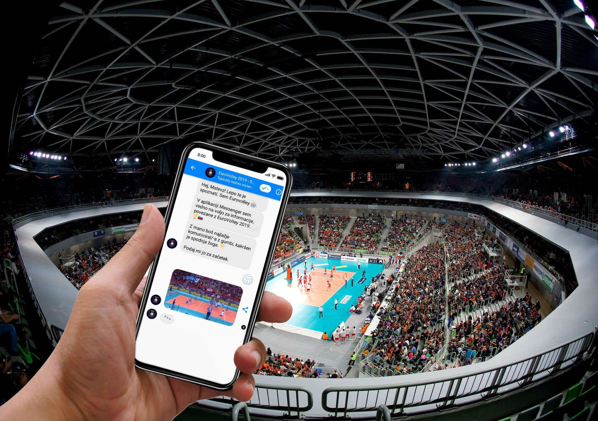Najbolj zagreti ljubitelji odbojke, ki jih zaenkrat bržčas bolj kot finale zanimajo vstopnice za slovenski del prvenstva v Stožicah, pa lahko že danes pridejo na svoj račun. Organizatorji slovenskega dela EuroVolleyja 2019 smo pohiteli in za najbolj nadobudne navijače angažirali odbojkarskega robotka, poimenovanega As, ki bo odslej na voljo za vsa vprašanja glede evropskega prvenstva 2019, z njim pa se danes, od 16. ure dalje, lahko spoznate prek povezave m.me/EuroVolley2019SI.