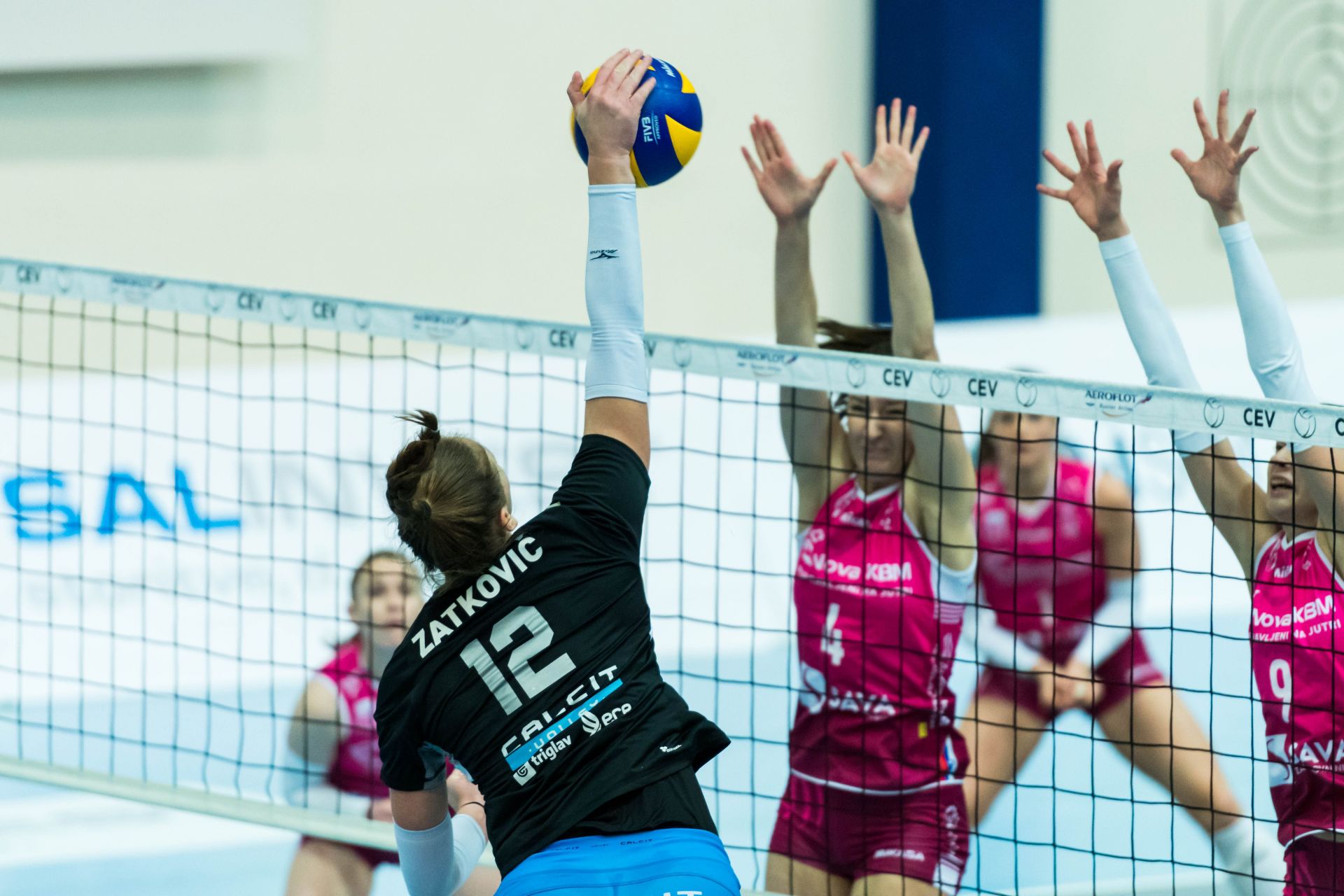 Odbojkarice druge ženske ekipe Calcit Volleyja so morale na prvi polfinalni tekmi Pokala Slovenije v Kanalu priznati premoč Novi KBM Branik. Branilke pokalnega naslova so bile boljše s 3:0 (9, 17, 8).