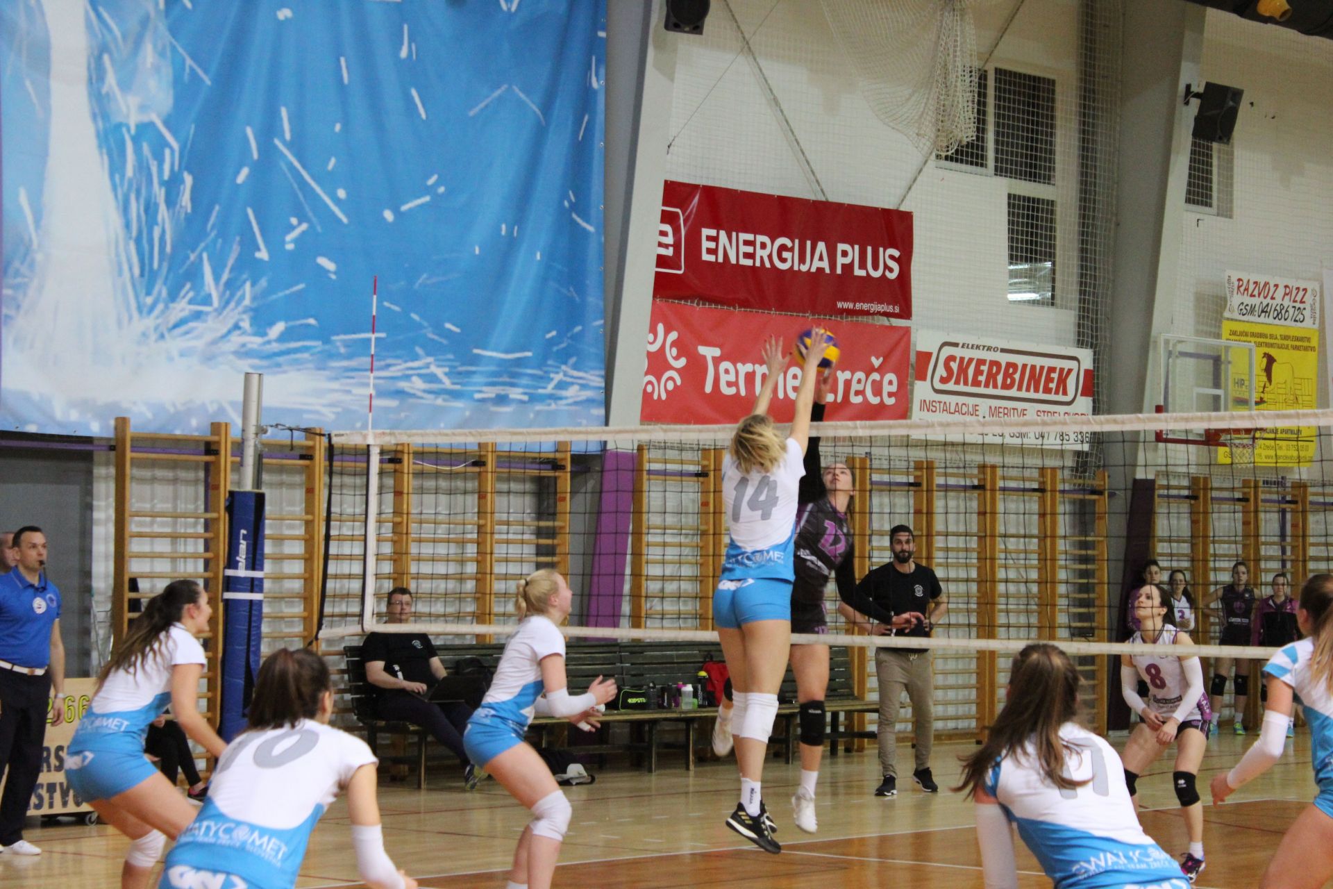 Tretji niz je domači trener pričel s Kogejevo namesto Rifelj-Škerlove in držal stik z gostjami vse do rezultata 9:10. Po vodstvu gostij 10:15 vidimo še drugi odmor domače ekipe in nato še menjavo Podkrajškove za Vovkovo pri 11:17. Ko se Zrečanke pri 17:19 približajo na dve točki zaostanka je gostujoči trener Mikša Sebastijan prekinil serijo s svojim odmorom. Swatycometove iskrice znižajo na 20:19, a so v končnici naredile dve svoje napake, ki so jih stale niza. Ob 21:25 so gostje povedle s 1:2 v nizih.