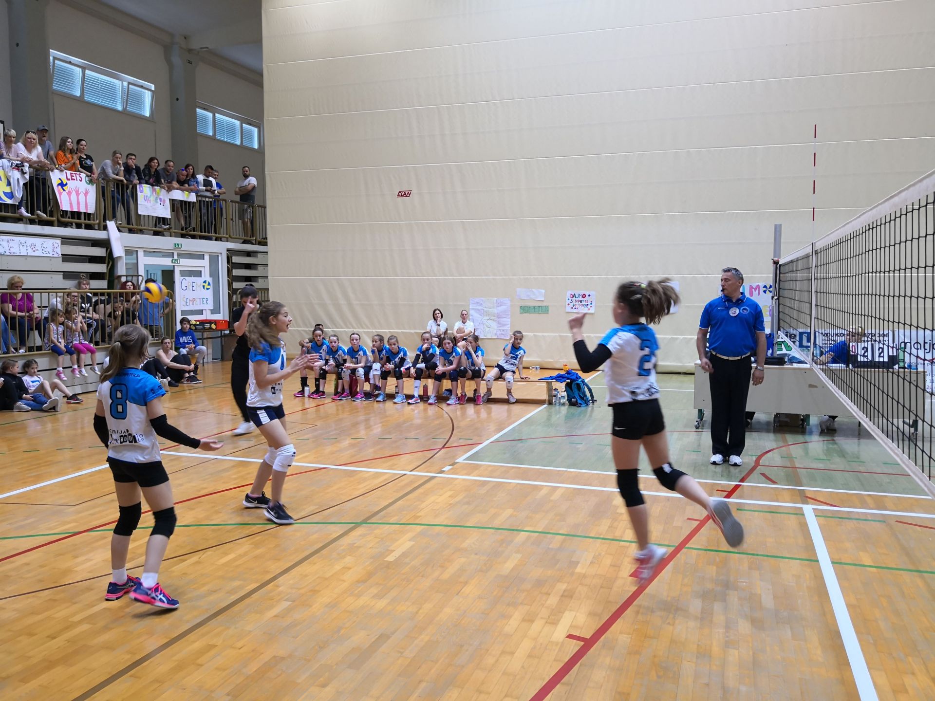 Na prvi tekmi velikega finala za deklice v mini odbojki sta se v Šempetru med sabo pomerila domača ekipa SIP Šempeter in ŽOK Škofja Loka. Bolje so pričele SIP-ovke, ki so povedle 7:3 in zato je gostujoča trenerka vzela prvi odmor. Šempetranke so nadaljevale odlično v napadu in na začetnem udarcu ter pobegnile na 13:6. Po treh odličnih napadih so domačinke vodile že z 19:11 in v nadaljevanju zasluženo slavile s 25:14. Tudi drug niz so odločneje začele Savinjčanke (5:2). Sledila je odlična igra Škofjeločank, ki so izenačile na 7:7. Gorenjke so nadaljevale odlično na servisu in bile prodorne v napadu ter si zagotovile vodstvo z 8:14. Šempetranke so se približale na 13:16 in na 20:21,v razburljivi končnici pa celo povedle s 23:21 in si z izjemnim preobratom in zmago s 25:21 zagotovile finale.