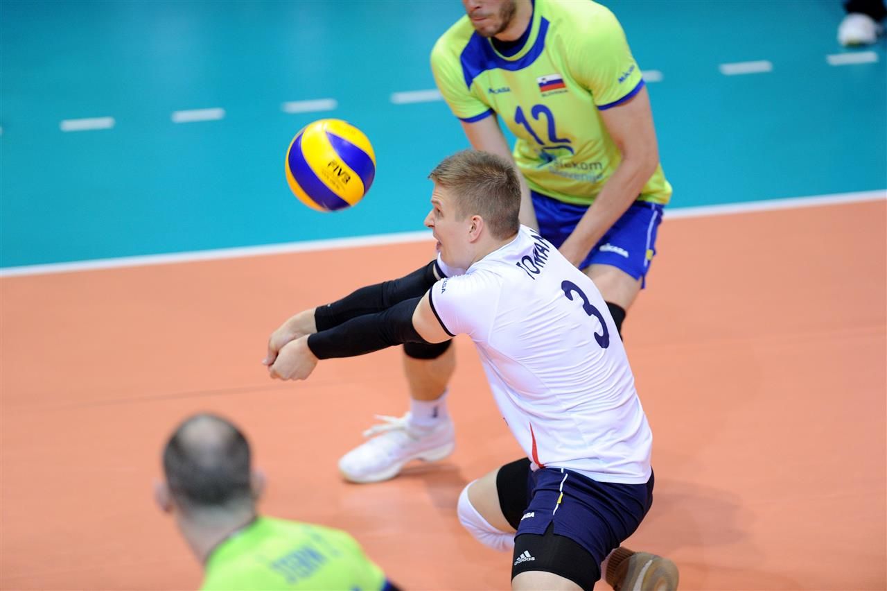 Prvo domačo tekmo v evropski ligi je slovenski selektor Samo Miklavc začel s podajalcem Urošem Planinšičem, korektorjem Tončkom Šternom, sprejemalcema Žigo Šternom in Janom Klobučarjem srednjima blokerjema Sašom Štalekarjem in Janom Kozamernikom ter prostim igralcem Urbanom Tomanom.