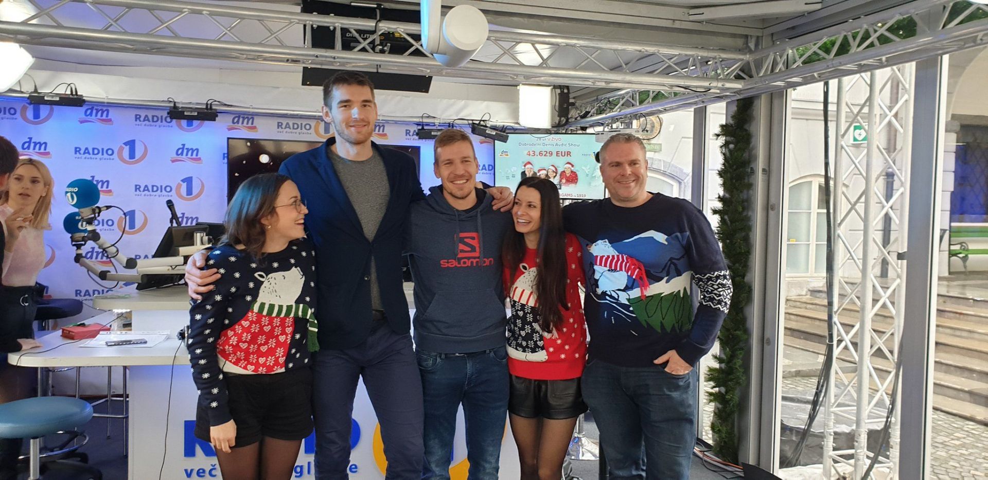 Slovenska odbojkarja na mivki Tadej Boženk in Vid Jakopin sta se odzvala vabilu Radia1 in obiskala začasni studio pred Mestno hišo v Ljubljani, v katerem je potekal 28-urni dobrodelni maraton.