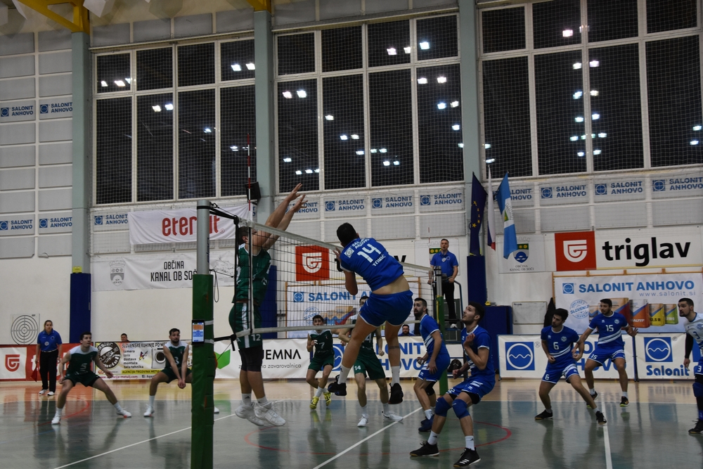 Tudi v začetku tretjega niza sta se ekipi izmenjevali v vodstvu vse do rezultata 11:8, ko je prvič s polminutnim odmorom odreagiral gostujoči trener Mišin. Z blokom Novljana so domači v nadaljevanju povedli s 15:11. Z asom Lindiča so se gostje nevarno približali na 15:13, ko je prvič v tem nizu polminutni odmorom zahteval tudi domači trener Šimunčič. Pri gostih se je v napadu razigral Drobnič in poskrbel za znižanje rezultata na 17:16. Pri domačih je v nadaljevanju na sceno stopil Peterlin in poskrbel za ponovno vodstvo Kanalcev s 23:17. Prvo zaključno žogo za domače je z uspešnim napadom priboril izkušeni Basaneže. Kanalci so z uspešnim napadom Peterlina izkoristili tretjo zaključno žogo in vknjižili prvo zmago v modri skupini državnega prvenstva.