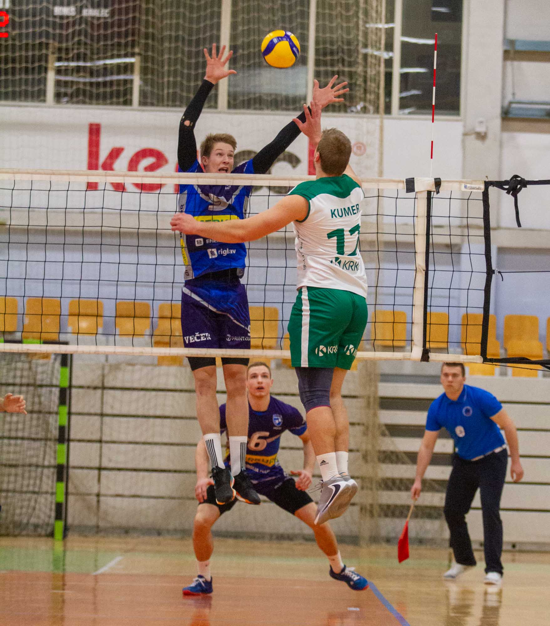 Domači so v drugem nizu zaigrali nekoliko bolje in z vodstvom 9:6 prisilili gostujočega trenerja k polminutnemu odmoru. Z nekaj dobrimi obrambnimi potezami so nato povedli še s 13:9, zatem pa se je tehtnica prevesila na gostujočo stran. Mariborčani so zaigrali bolje in na dober servis Možiča izid izenačili na 16. točki. S podobnim naletom so nadaljevali in v končnico vstopili s tremi točkami prednosti. Kosmina je z uspešnim blokom Krkaše približal na točko zaostanka. Možič je nato poskrbel za dve napadalni točki in gostom priskrbel prvo zaključno žogo, niz pa se je končal z zgrešenim začetnim udarcem domačih odbojkarjev. (23:25)