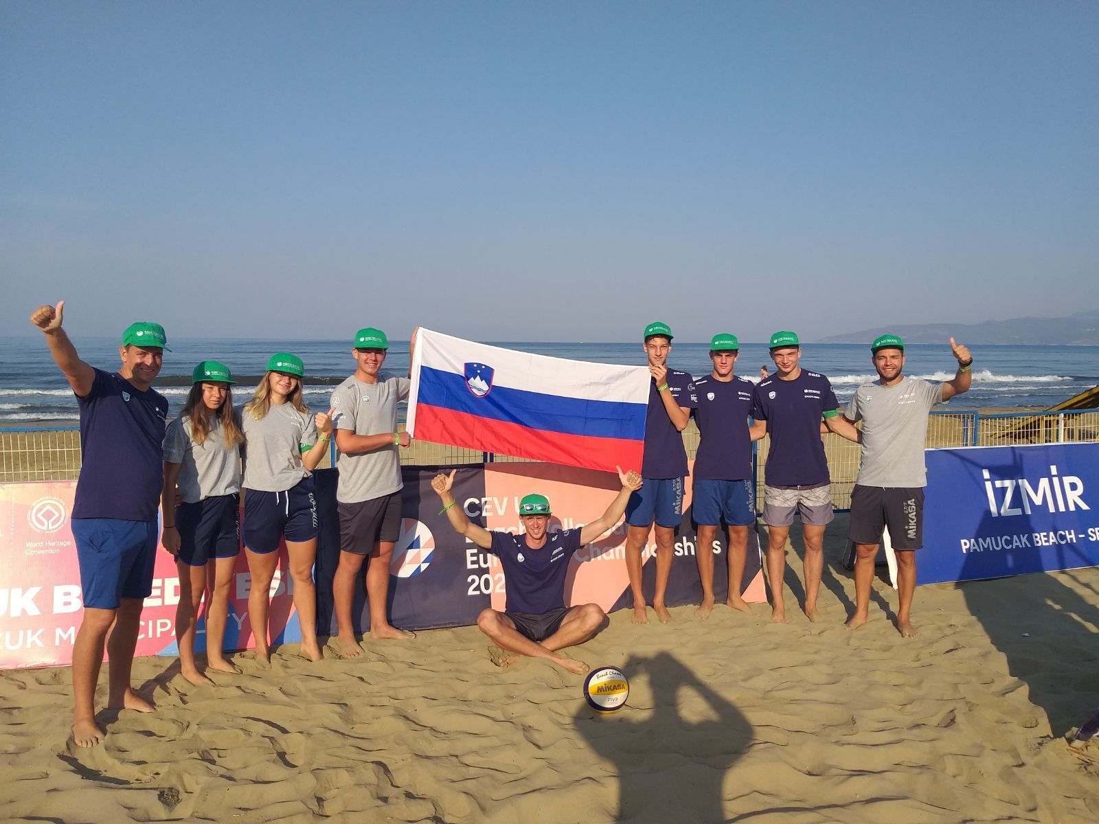 Slovenska reprezentanca v odbojki na mivki bo jutri v Izmirju začela z nastopi na evropskem prvenstvu do 18 let. V Turčijo so odpotovali trije slovenski pari, Asja Šen in Ira Kadunc, Miha Okorn in Luka Marovt ter Žan Zajc in Rok Bračko.