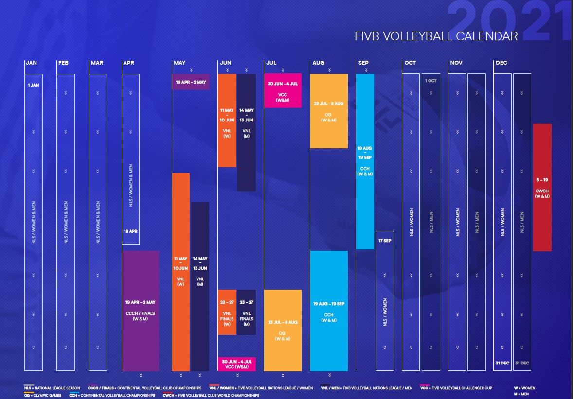Svetovna odbojkarska zveza (FIVB) je objavila koledar tekmovanj za obdobje med letoma 2021 in 2024 oziroma za prihodnji olimpijski ciklus do olimpijskih iger v Parizu leta 2024.