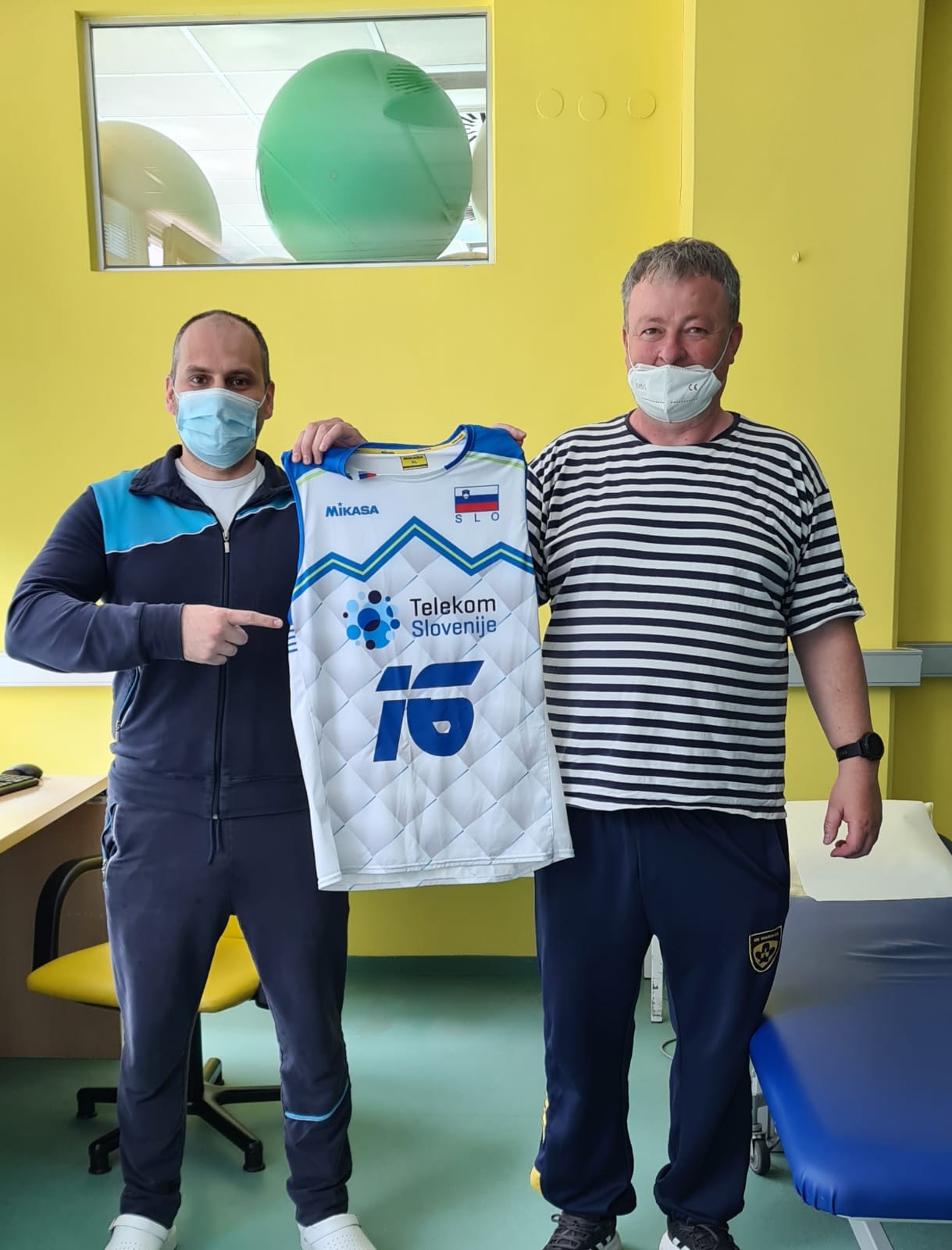 Člani slovenske moške odbojkarske reprezentance so športnega navdušenca Janeza, ki se je hudo ponesrečil na poti iz Pariza, kjer je spremljal finale evropskega prvenstva 2019, razveselili z lepo gesto, s podpisanim dresom.