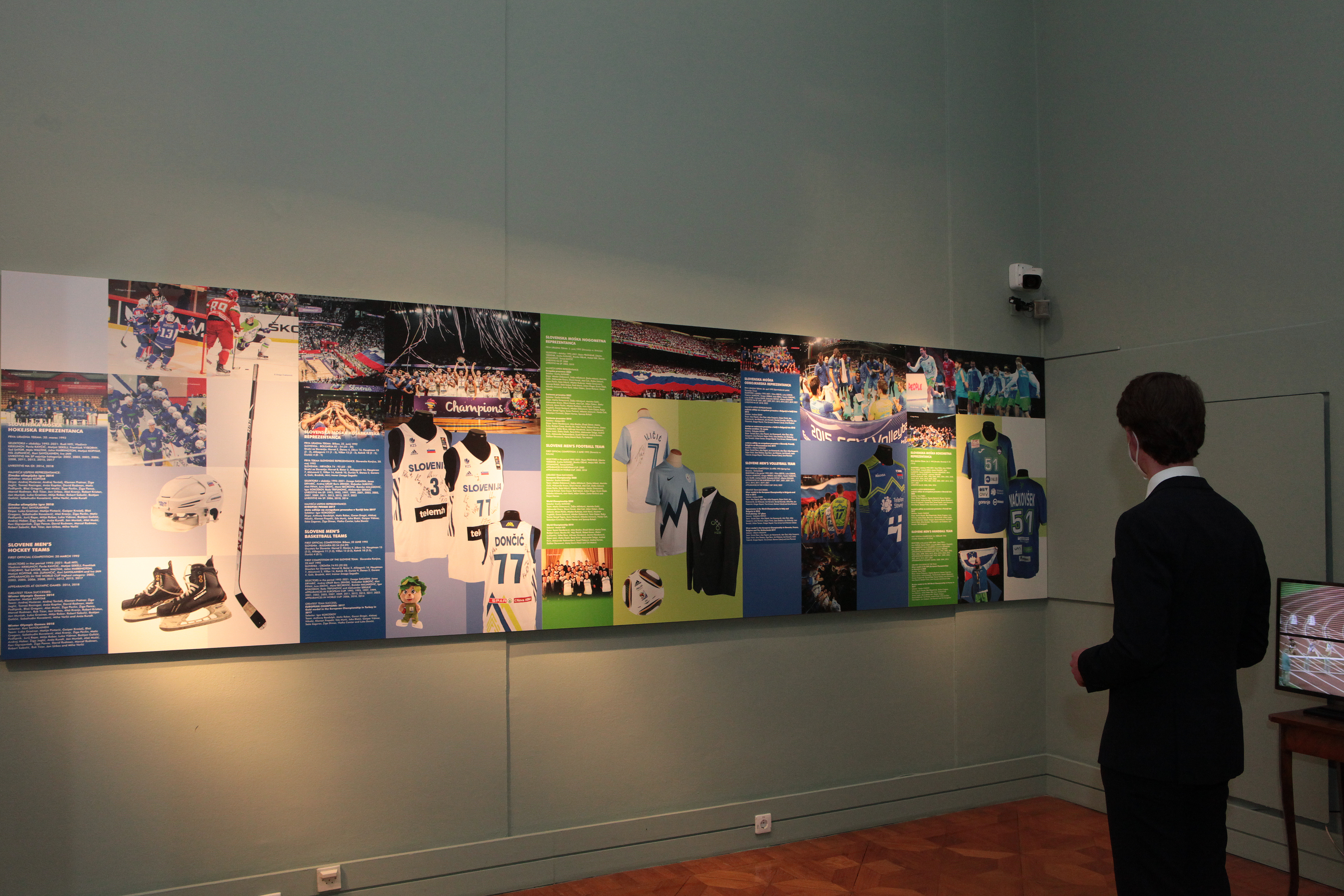 Med temi dosežki so tudi športni. Slovenski športniki so od osamosvojitve leta 1991 pa do danes namreč nanizali izjemne uspehe, osvojili vrsto odličij na največjih tekmovanjih, na olimpijskih igrah ter svetovnih in evropskih prvenstvih. Odbojkarska zveza Slovenije je v okviru razstave na ogled postavila pokal z evropskega prvenstva 2019, na katerem je moška reprezentanca osvojila srebrno medaljo, na uspeh pa v posebni vitrini spomnita še fotografija z EuroVolleyja v Bolgariji in Italiji leta 2015 in dres reprezentanta Jana Kozamernika.