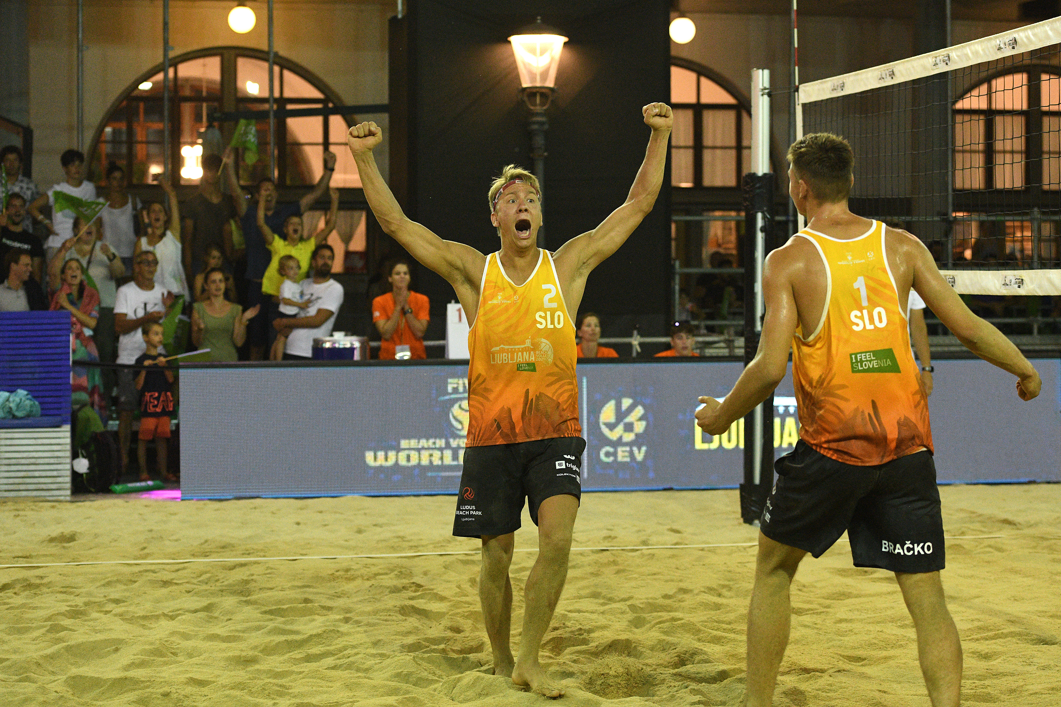Edina slovenska predstavnika, ki sta se na Pogačarjevem trgu borila za najvišja mesta, Alan Košenina in Rok Bračko, sta zadnji dan tekmovanja začela s polfinalno zmago nad Švedoma Martinom Appelgrenom in Alexandrom Hermannomm, od katerih sta bila pred polnimi tribunami boljša po treh nizih, z 21:16, 17:21 in 15:9. V velikem finalu sta naša odbojkarja na mivki zaigrala proti Litovcema Audriusu Knasasu in Patrikasu Stankeviciusu in v prvem nizu klonila s 14:21, v drugem pa sta morala tekmecema priznati premoč z 12:21 in tako osvojila srebrno odličje, njuno prvo na turnirjih svetovne serije. »Prvič sva skupaj igrala na takem turnirju in uspel nama je nor dosežek. Dejstvo, da sva prišla tako daleč, pove zadosti. Prišla sva uživat, prišla sva se zabavat in zabavat ljudi, končalo se sicer ni čisto na najboljši možni način, ampak za naju je srebrna medalja vredna toliko kot zlata,« je bil kljub porazu v finalu vesel Košenina.