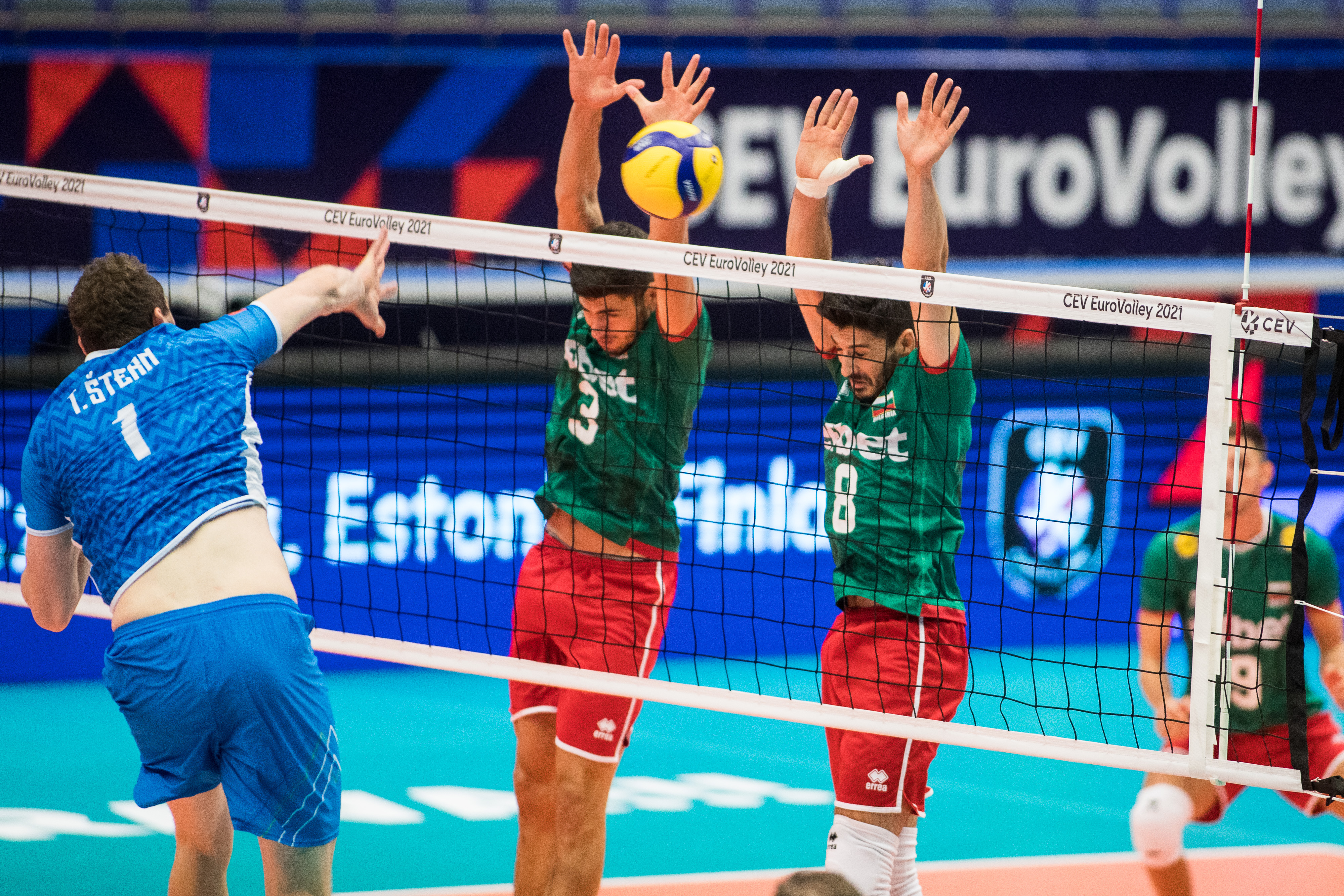 Slovenska izbrana vrsta je obračun z Bolgarijo začela s svojo udarno zasedbo, Alberto Giuliani je v igro poslal podajalca Dejana Vinčića, korektorja Tončka Šterna, srednja blokerja Alena Pajenka in Jana Kozamernika, sprejemalca Tineta Urnauta in Klemna Čebulja ter prostega igralca Janija Kovačiča.