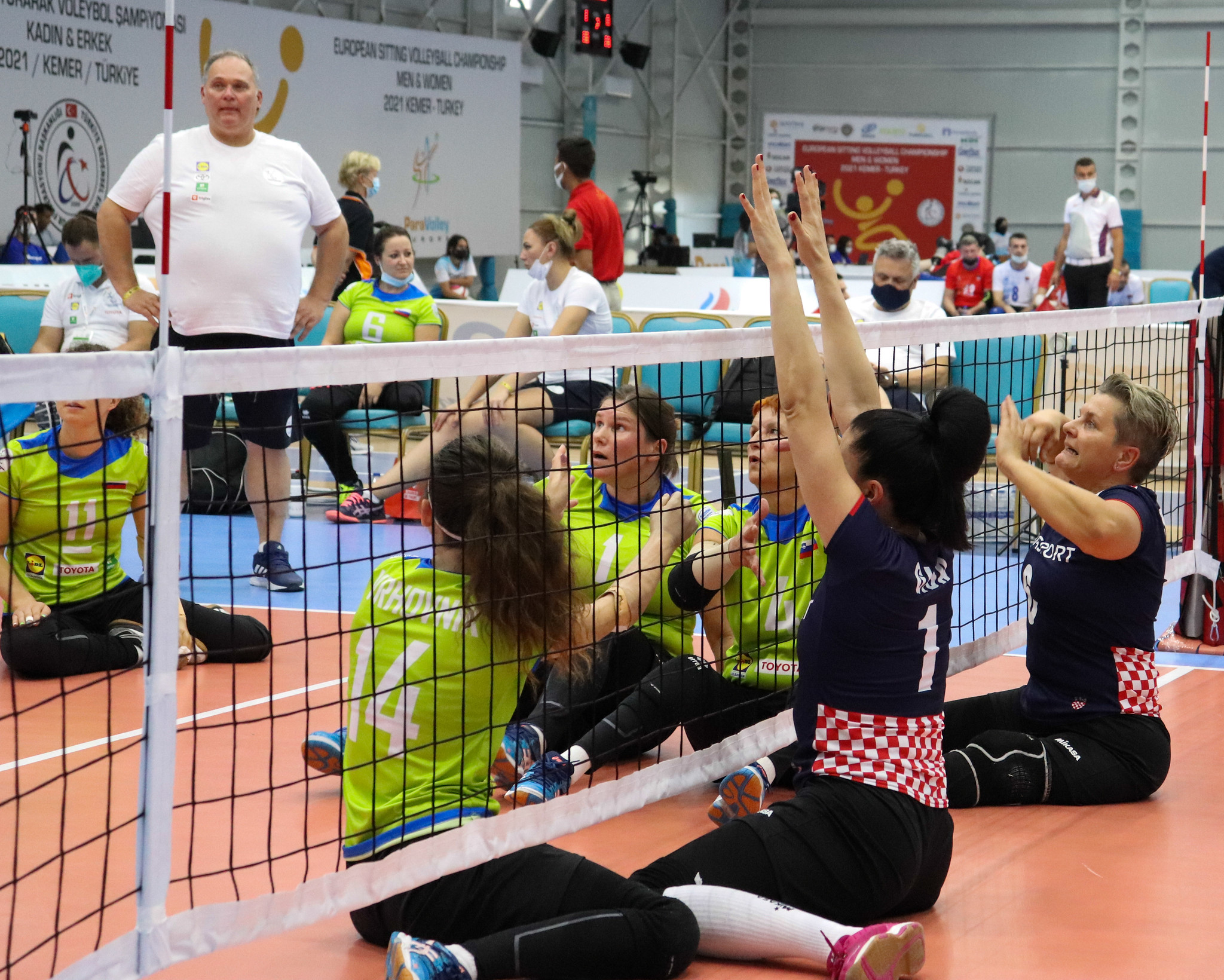 V Turčiji je danes potekal prvi dan evropskega prvenstva v odbojki sede, ki je slovenski reprezentanci prinesel eno zmago in en poraz. Naša dekleta so v Kemerju s 3:0 (13, 11, 19) premagala Hrvatice. S Hrvaško vrsto so se pomerili tudi naši fantje in izgubili z 0:3 (13, 9, 18).