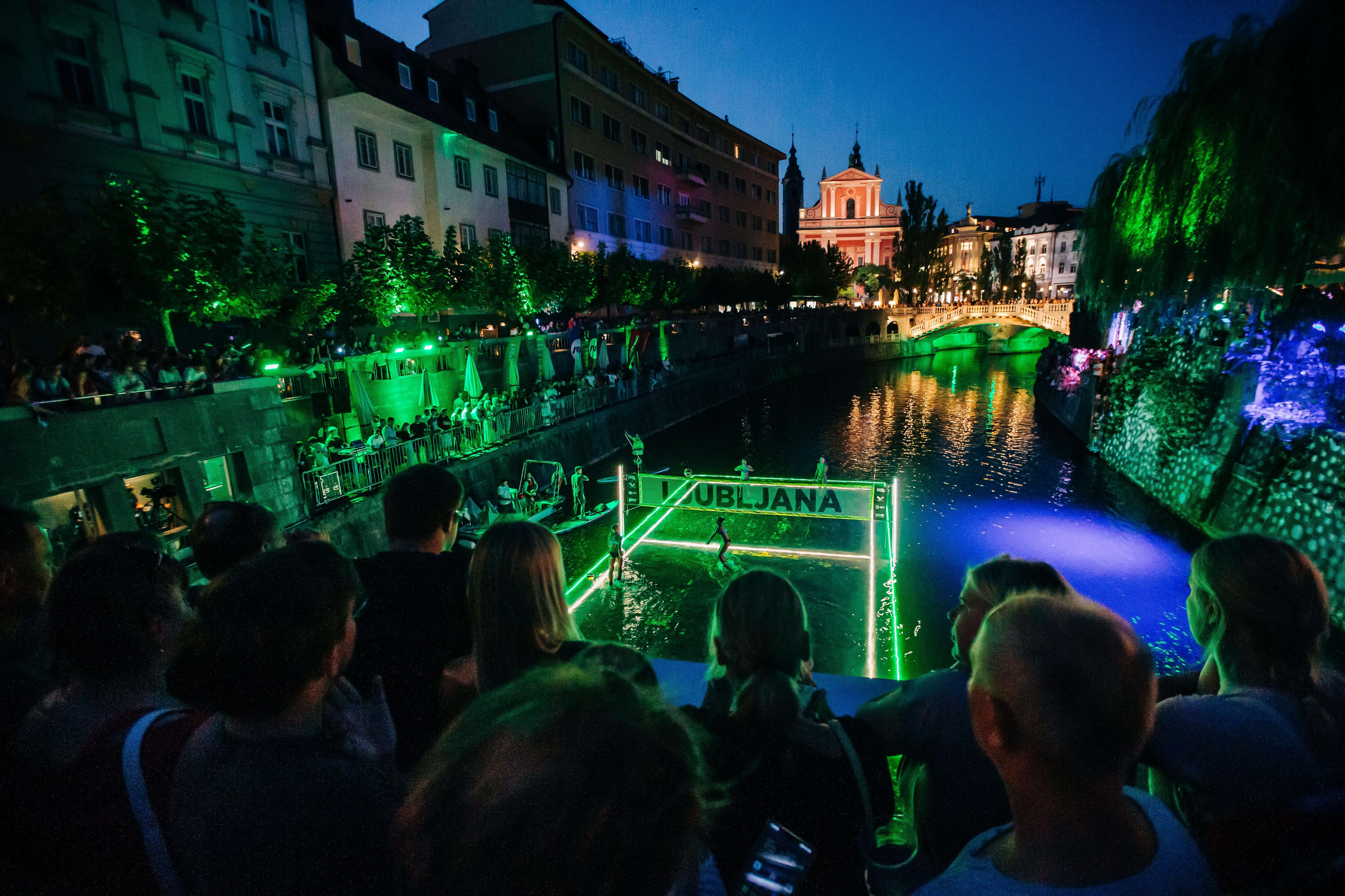 V slovenski prestolnici smo od 12. 30 ure naprej spremljali svojevrsten turnir v odbojki na vodi, na katerem so se predstavili tudi sedanji in nekdanji slovenski reprezentanti in nekateri najboljši slovenski odbojkarji in odbojkarice na mivki, ki so številne gledalce navdušili z atraktivnimi potezami.