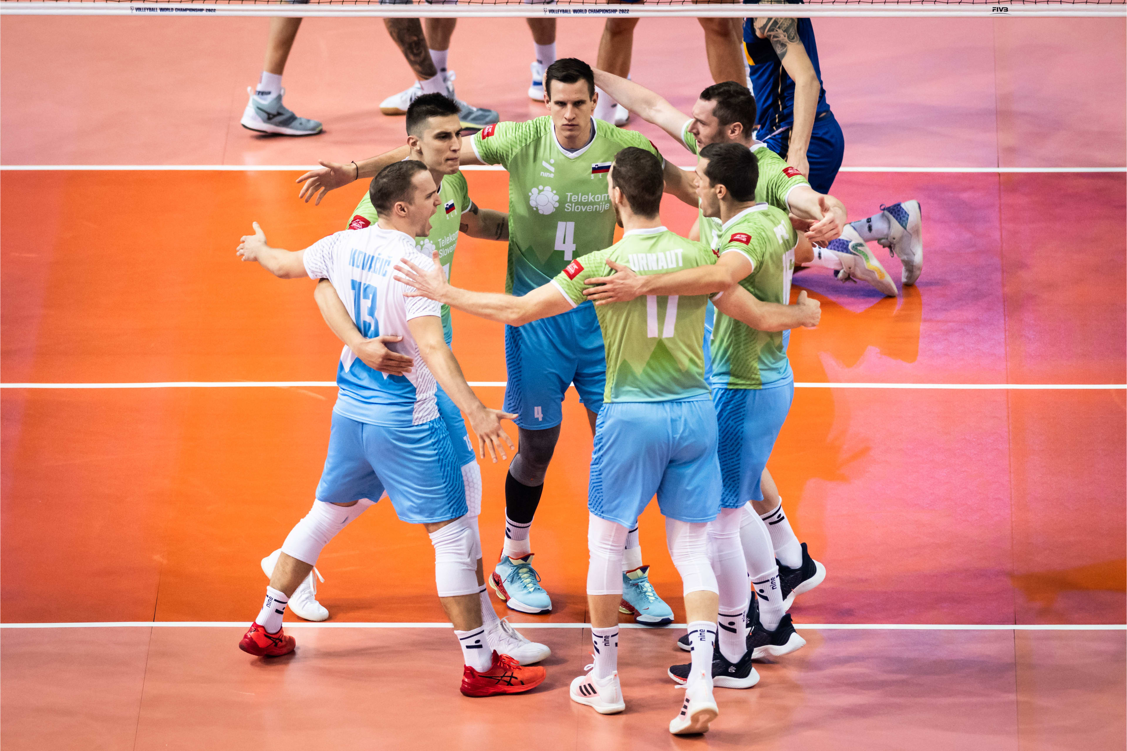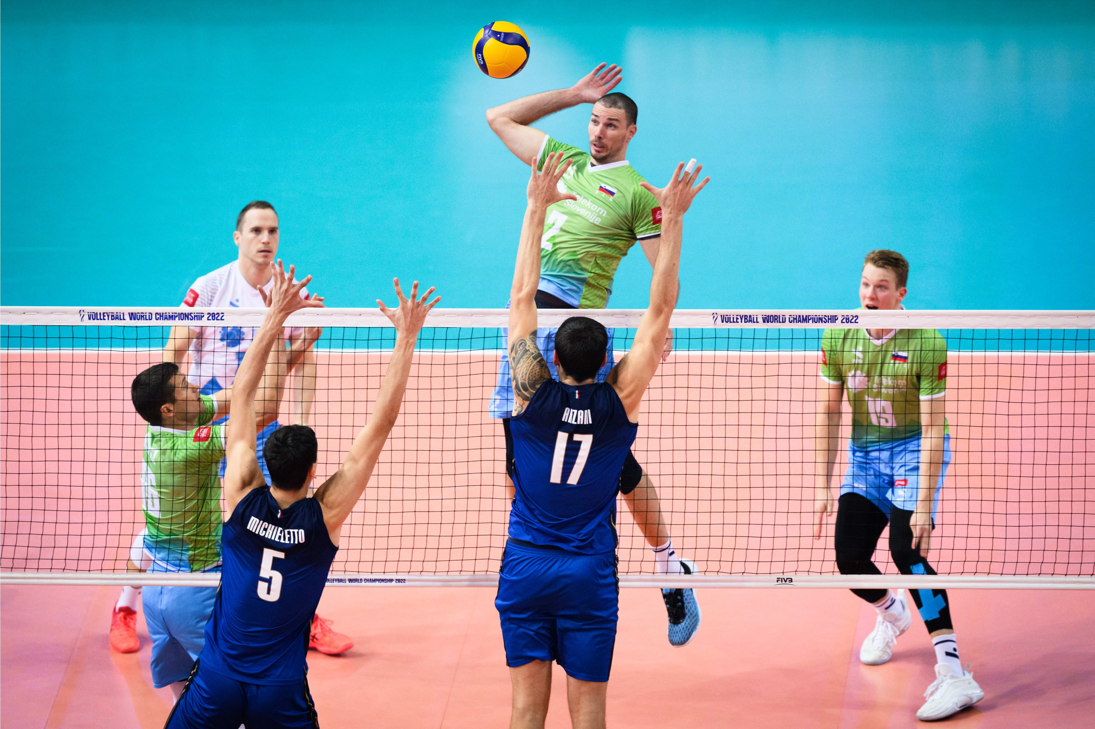 Polfinalni obračun svetovnega prvenstva v poljskih Katovicah je slovenski selektor Gheorghe Cretu začel s podajalcem Gregorjem Ropretom, korektorjem Tončkom Šternom, sprejemalcema Klemnom Čebuljem in Tinetom Urnautom, srednjima blokerjema Alenom Pajenkom in Janom Kozamernikom ter prostim igralcem Janijem Kovačičem.
