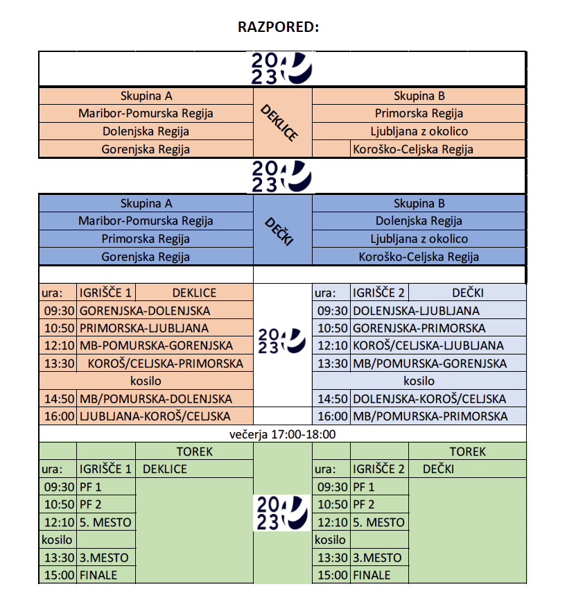Pri deklicah bo v skupini A igrala še izbrana vrsta Maribora z okolico in pomursko regijo, v skupini B pa se bodo merile Primorska, koroško-celjska regija in Ljubljana z okolico. Pri dečkih bo v skupini B nastopila še koroško-celjska regija, v skupini A pa bodo igrale reprezentance Maribora z okolico in pomursko regijo, primorske regije in gorenjske regije.