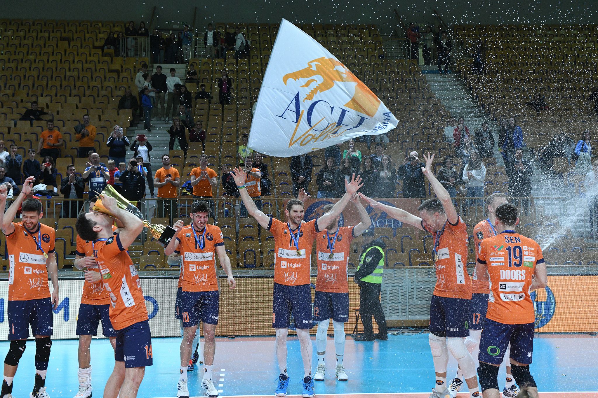 ACH Volley Ljubljana: Mejal, Šket 4, Mašulović, Todorović, Bošnjak, Koncilja 10, Šestan 14, Kovačič, Gjorgiev 12, Videčnik 9, Kök 24, Šen.