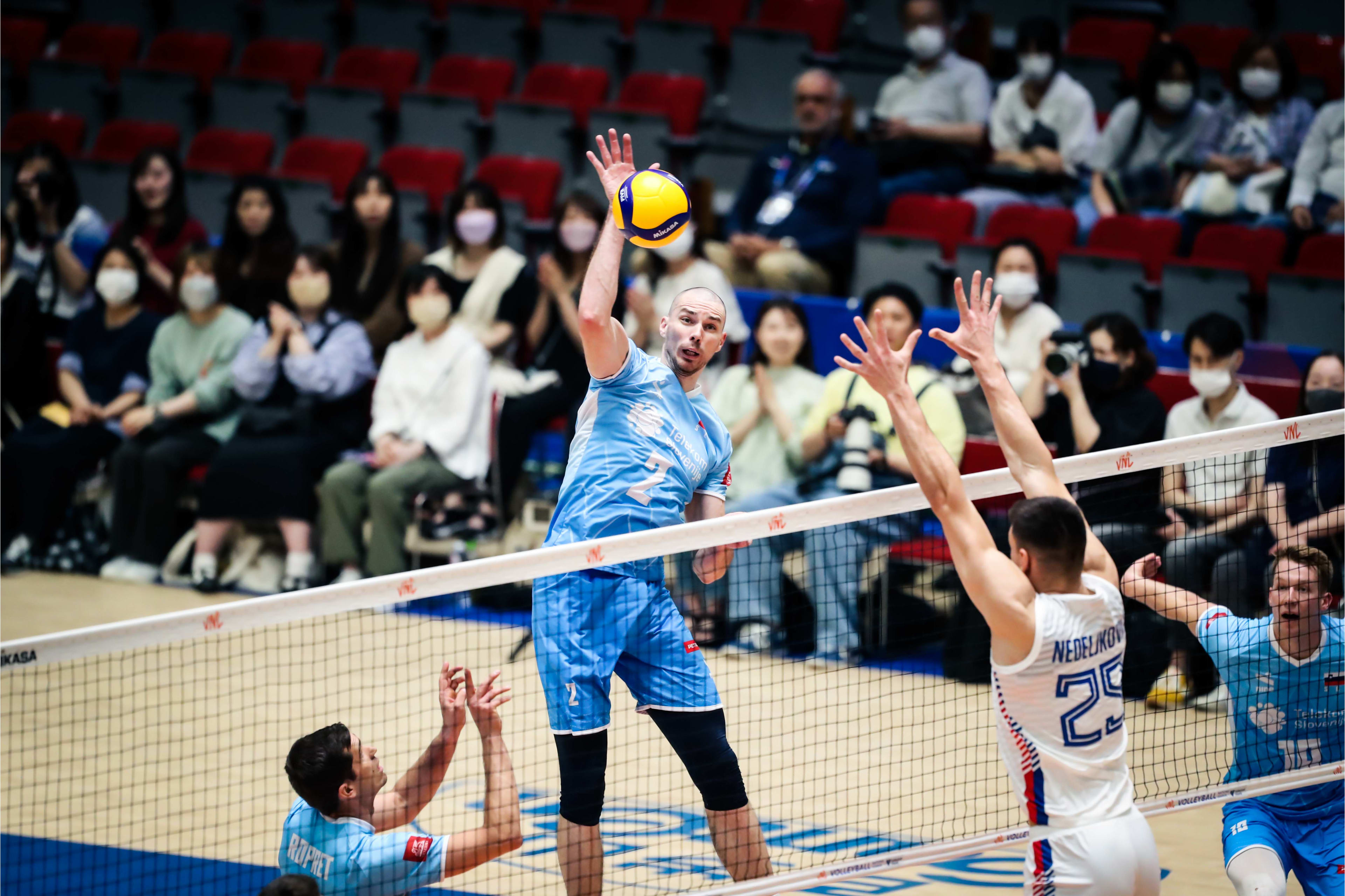 Slovenijo na prvem izmed treh turnirjev lige narodov – preostala bosta gostila francoski Orleans (20.-25. junij) in Pasay City (4.-9. julij) na Filipinih - druga tekma čaka v četrtek. Pomerila se bo z Bolgarijo, ki je v sredo, na prvi dan turnirja v Nagoji, z 2:3 klonila proti Kitajcem. Slovenci so si s četrtkovimi tekmeci nazadnje stali nasproti v lanskoletni izvedbi elitne lige narodov, ko so bili v Gdansku boljši s 3:1. Naključje ali ne, dan pred tem se je slovenska vrsta ravno tako odpravila Srbe (tedaj s 3:0).