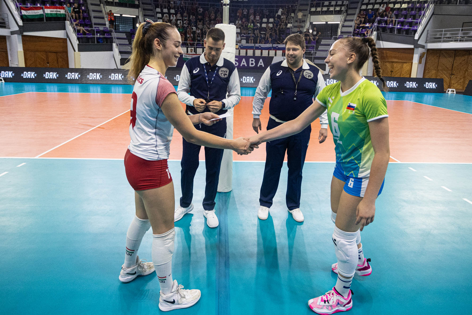V nadaljevanju je bila igra veliko bolj izenačena. Sredi drugega niza je Slovenija sicer nekajkrat uspela povesti s tremi točkami (13:10, 14:11, 15:12), pike na i pa ji vendarle ni uspelo postaviti. Madžarke so to izkoristile ter si z nizom 8:1 priigrale lepo prednost (20:16). Po zaslugi Nike Drkušić so nato Slovenke zaostanek uspele prepoloviti (19:21), priključek na 22:22 pa nekaj trenutkov za tem ujele z blokom Nike Pucelj. Sledila so številna izenačenja in zaključne žoge na obeh straneh, osmo pa so za osvojeni niz s 33:31 izkoristile Slovenke.