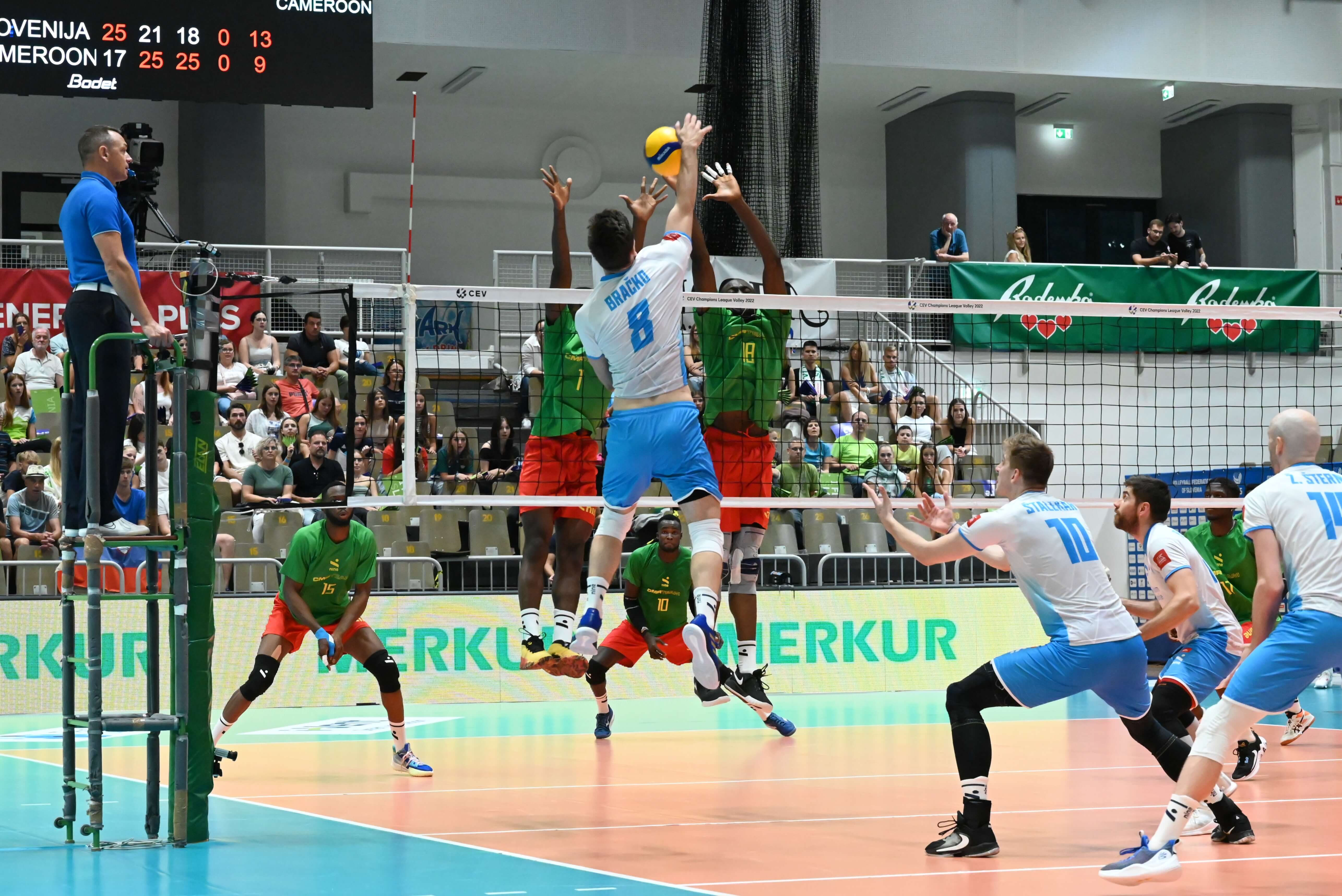 Slovenska moška odbojkarska reprezentanca je po včerajšnji prepričljivi zmagi nad Egiptom danes v Mariboru s 3:2 (17, -21, -18, 20, 12) premagala še Kamerun, pri čemer selektor Gheorghe Cretu obračuna ni odigral s svojo udarno zasedbo.