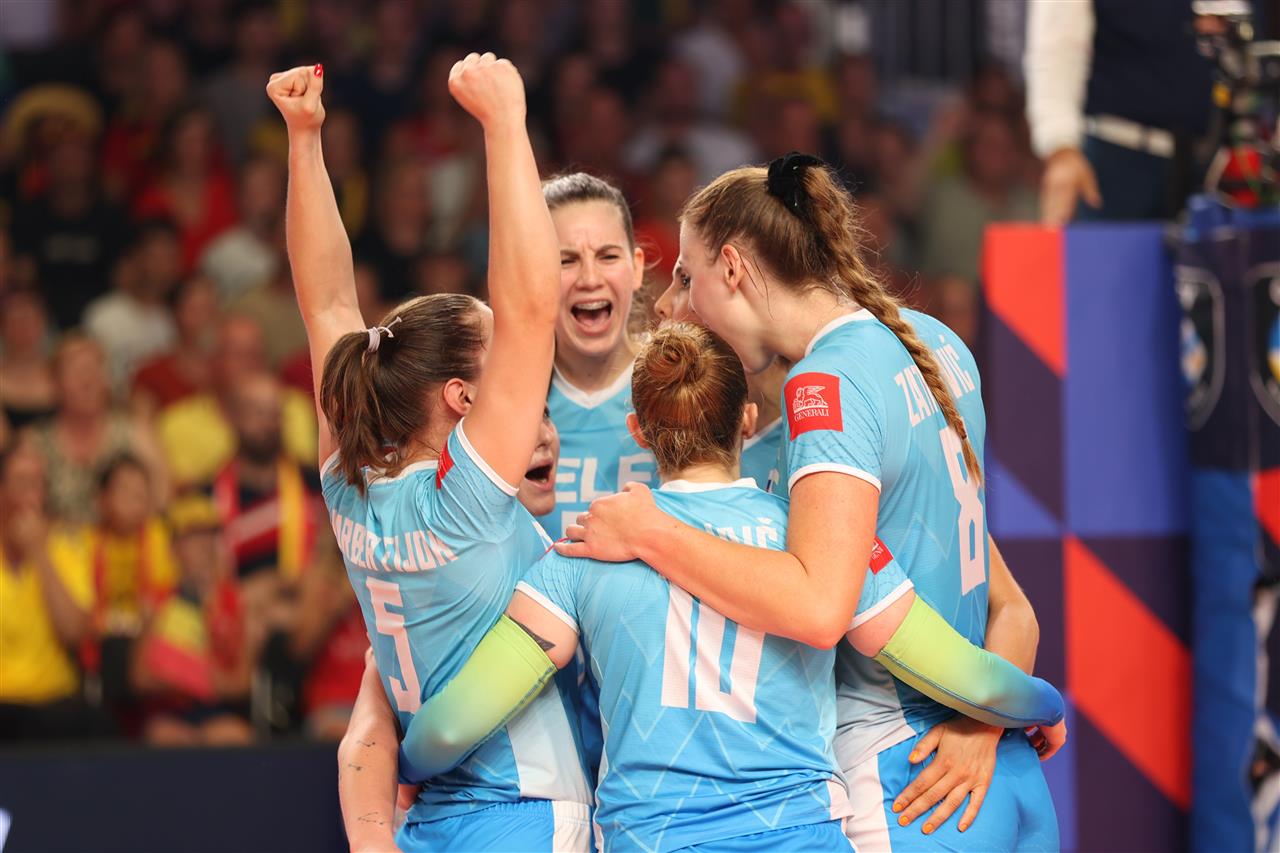 Slovenke tretja tekma evropskega prvenstva, ki ga skupaj gostijo Belgija, Italija, Nemčija in Estonija, čaka v nedeljo, ko se bodo ob 17. uri pomerile z aktualnimi svetovnimi prvakinjami Srbkinjami.