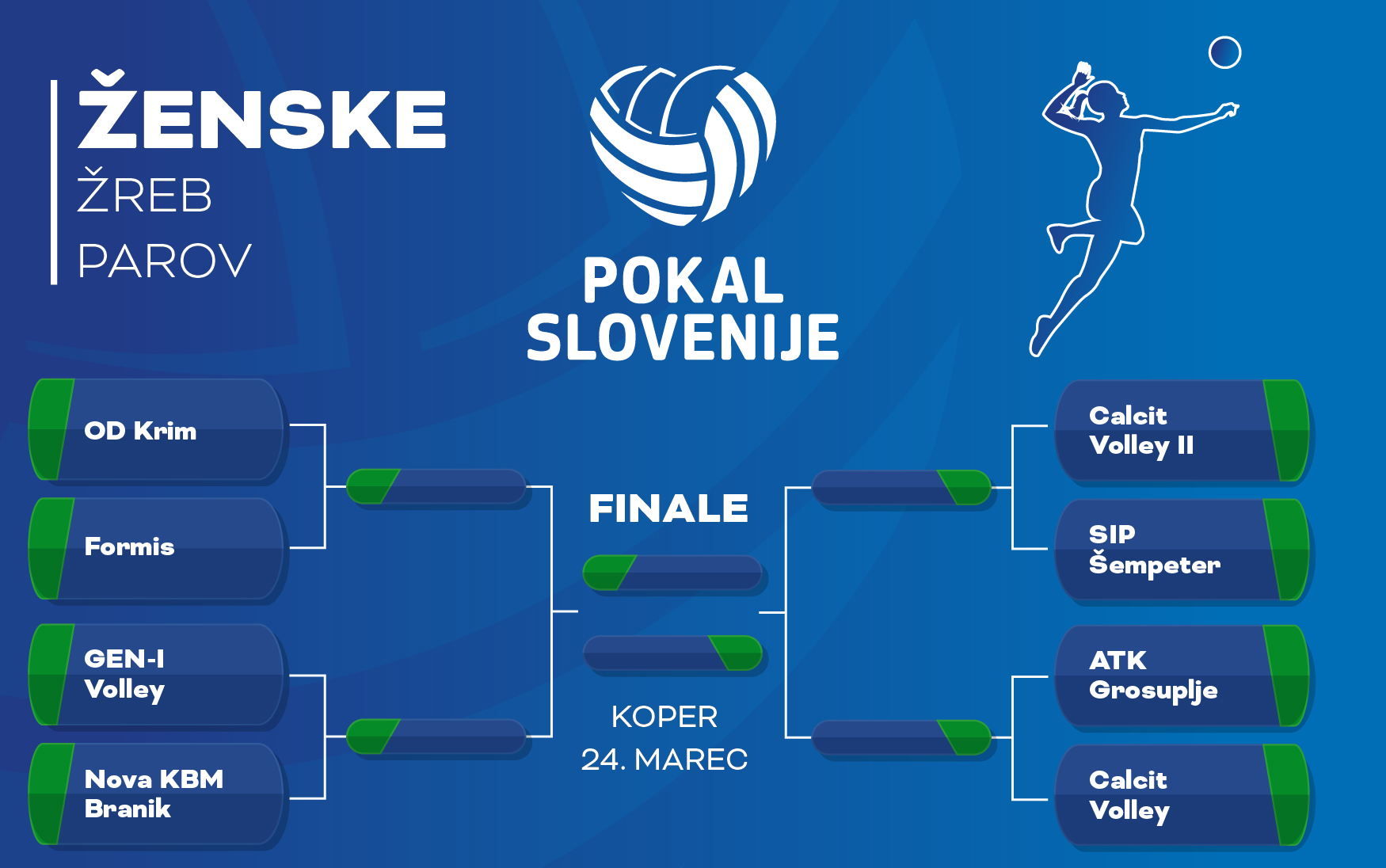 V Ljubljani bomo spremljali četrtfinalno srečanje med OD Krimom in Formisom, ki sta se med seboj merila že v zeleni skupini državnega prvenstva in zmagala vsak po enkrat. Aktualne pokalne prvakinje iz Maribora se bodo podale na gostovanje v Novo Gorico, kjer jih čaka obračun z GEN-I Volleyjem, s katerim so v tej sezoni izgubile le na uvodni tekmi Sportklub prve odbojkarske lige, v nadaljevanju prvenstva pa so bile vselej uspešnejše.
