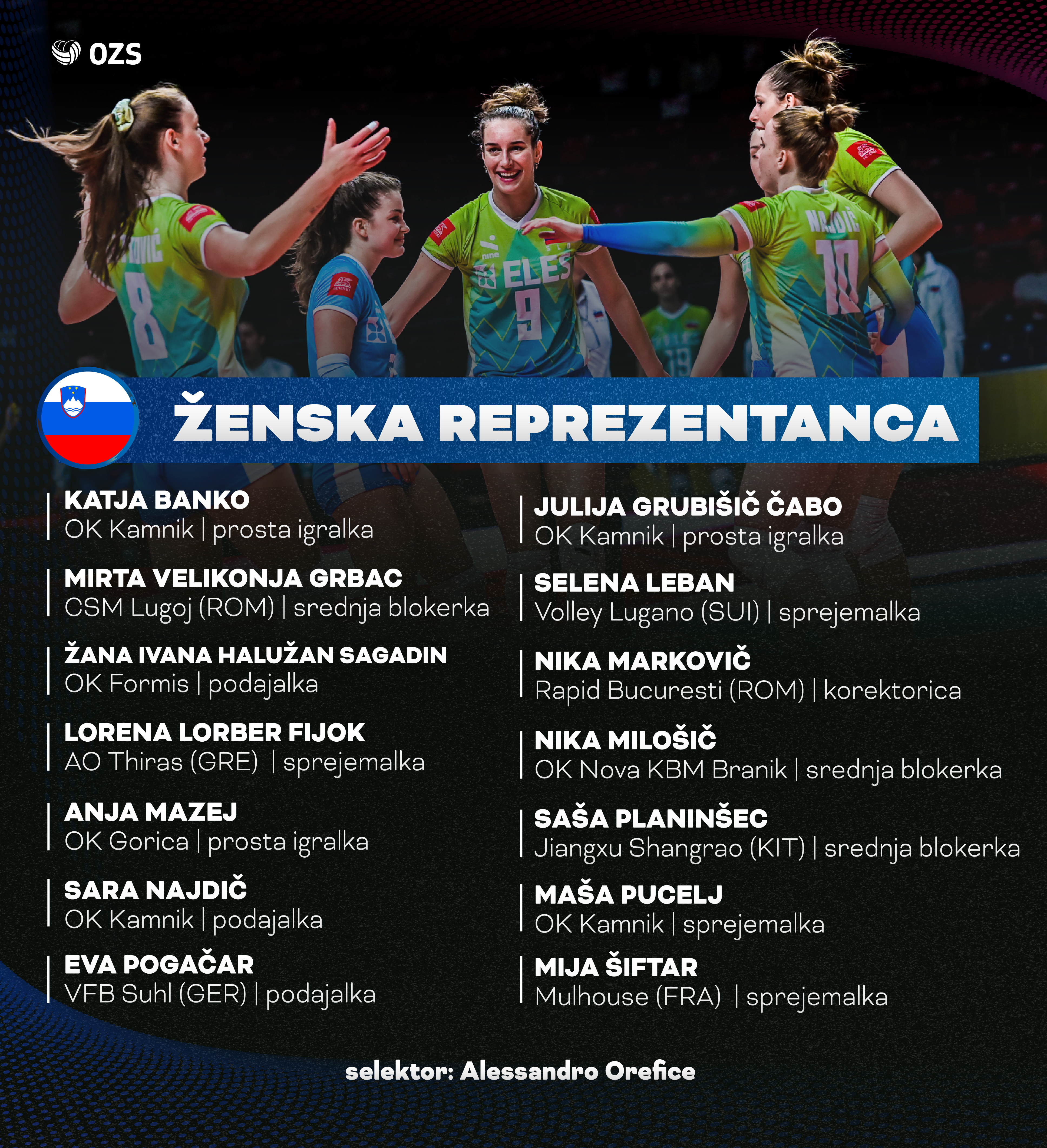 Slovenska ženska odbojkarska reprezentanca bo v letošnji sezoni nastopila v zlati evropski ligi in kvalifikacijah za evropsko prvenstvo 2026. Izbrana vrsta pod vodstvom italijanskega stratega Alessandra Oreficeja se bo prvič zbrala 30. aprila v Kranjski Gori.