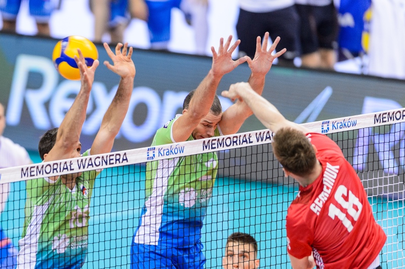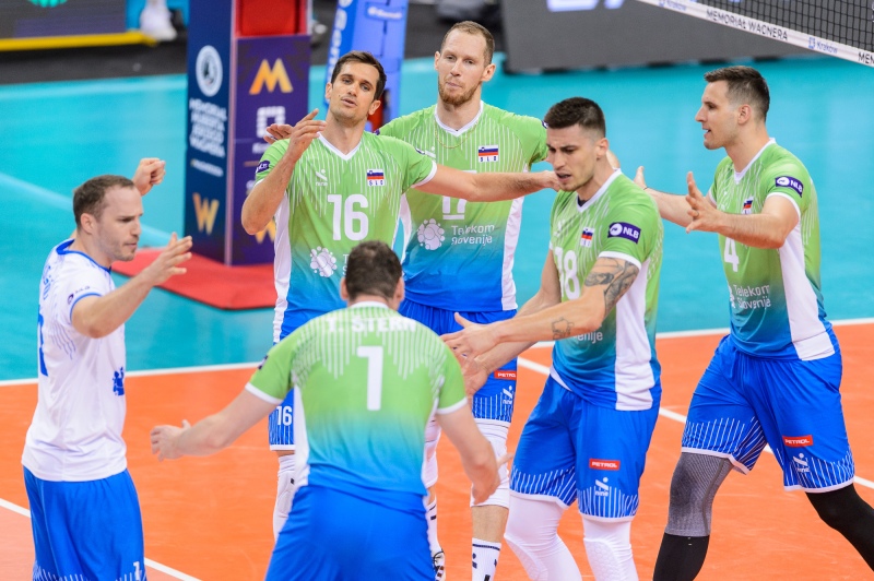 Slovenski odbojkarji so se po zmagah nad Nemčijo in Egiptom v Krakovu srečali še s Poljaki, ki so v petek in soboto prav tako vknjižili dve zmagi. Slovenski selektor Gheorghe Cretu je potem, ko je včeraj priložnost za dokazovanje ponudil igralcem s klopi, na igrišče zopet poslal udarno zasedbo, Gregorja Ropreta, Tončka Šterna, Alena Pajenka, Jana Kozamernika, Tineta Urnauta, Klemna Čebulja in Janija Kovačiča.