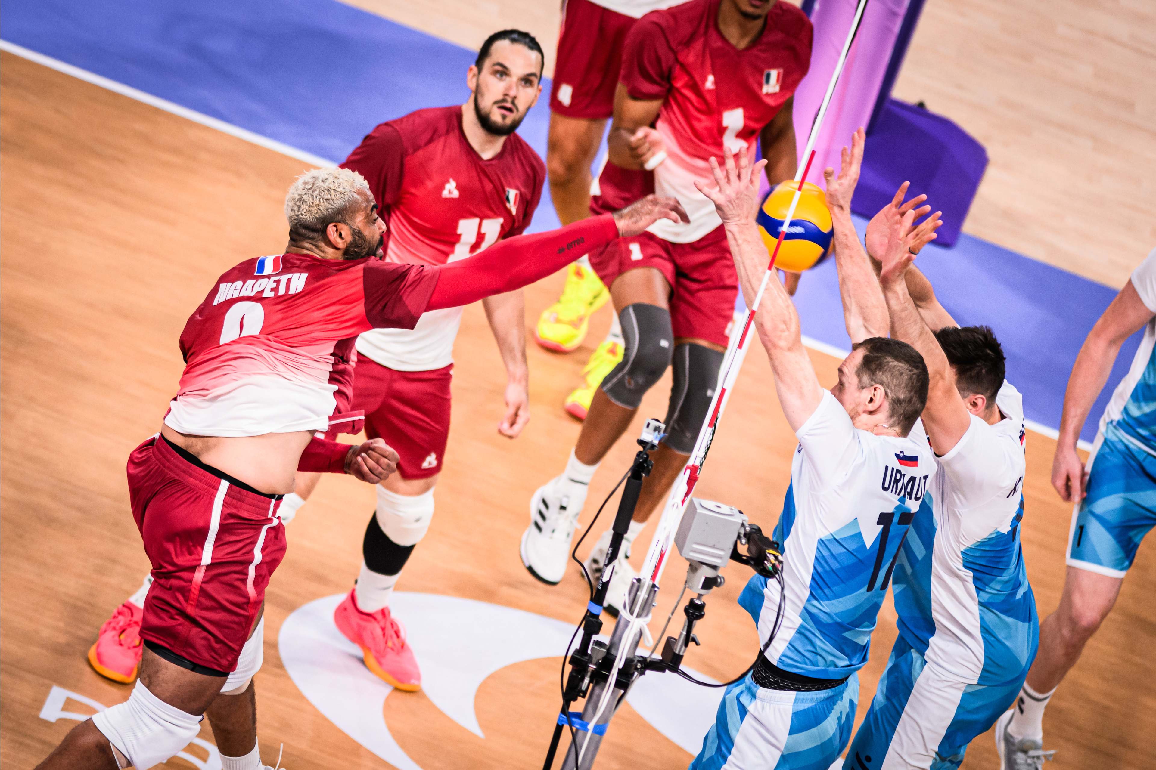 Slovenski odbojkarji so po zmagah nad Kanado s 3:1 in Srbijo s 3:0 na uvodnih tekmah skupine A na olimpijskem turnirju v Parizu odigrali še obračun proti aktualnim olimpijskim prvakom Francozom. Z njimi so se srečali že v letošnji ligi narodov in slavili s 3:1. Kljub temu, da sta si obe reprezentanci že pred začetkom tretjega kroga zagotovili uvrstitev v četrtfinale, sta selektorja Andrea Giani in Gheorghe Cretu obračun odprla z najmočnejšima postavama. Cretu s podajalcem Gregorjem Ropretom, korektorjem Tončkom Šternom, srednjima blokerjema Alenom Pajenkom in Janom Kozamernikom, sprejemalcema Tinetom Urnautom in Klemnom Čebuljem ter prostim igralcem Janijem Kovačičem.