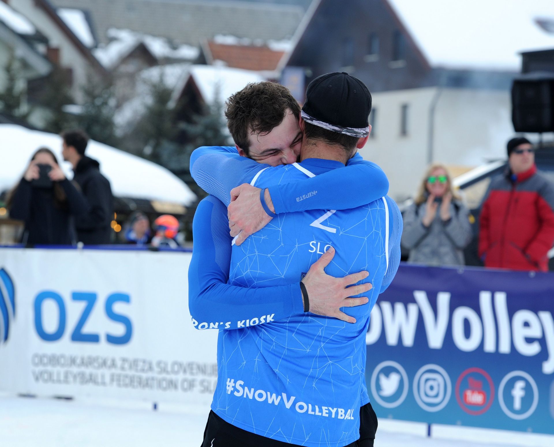 Kot prva Slovenca sta na snežno podlago ob vznožju smučišča Kekec stopila Davor Zupančič in Aljaž Juvančič, ki sta bila v uvodnem nastopu prepričljivo, z 11:8 in 11:8, boljša od Belgijcev Van de Wielleja in Masseta. V nadaljevanju sta morala, z 0:2 v nizih, priznati premoč četrtopostavljenima Rusoma Golovinu in Durninu ter Avstrijcema Kattnerju in Seiserju in tako zaključila z nastopi. “Sem sva prišla brez kakšnih pričakovanj, želela sva le uživati v odbojki. Po uvodni zmagi nad belgijskim parom sva najprej naletela na rusko, nato še na avstrijsko dvojico. Obe ekipi sta bolj uigrani od naju, igralci so unovčili svoje izkušnje, nama z Aljažem pa je zmanjkalo tudi malo športne sreče. Ampak ne glede na vse je bil današnji dan fantastičen, tako za naju kot za vse ostale, obiskovalce in tekmovalce,” je po krstnem nastopu med evropsko elito dejal Davor Zupančič.