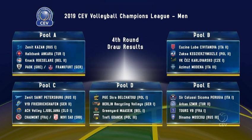 Francoska odbojkarska legenda, Victoria Ravva, ki je opravila žreb moškega dela lige prvakov, je slovenski ekipi namenila petouvrščeno ekipo ruskega prvenstva v pretekli sezoni, Zenit Sankt Petersburg, nemške državne podprvake VfB Friedrichshafen in pa zmagovalca dvoboja med francosko ekipo Chaumont VB 52 Haute Marne, ki je lanskoletna udeleženka lige prvakov, in aktualnimi srbskimi prvaki Vojvodino NS Seme Novi Sad. Prva tekma odbojkarje ACH-ja čaka med 20. in 22. novembrom.